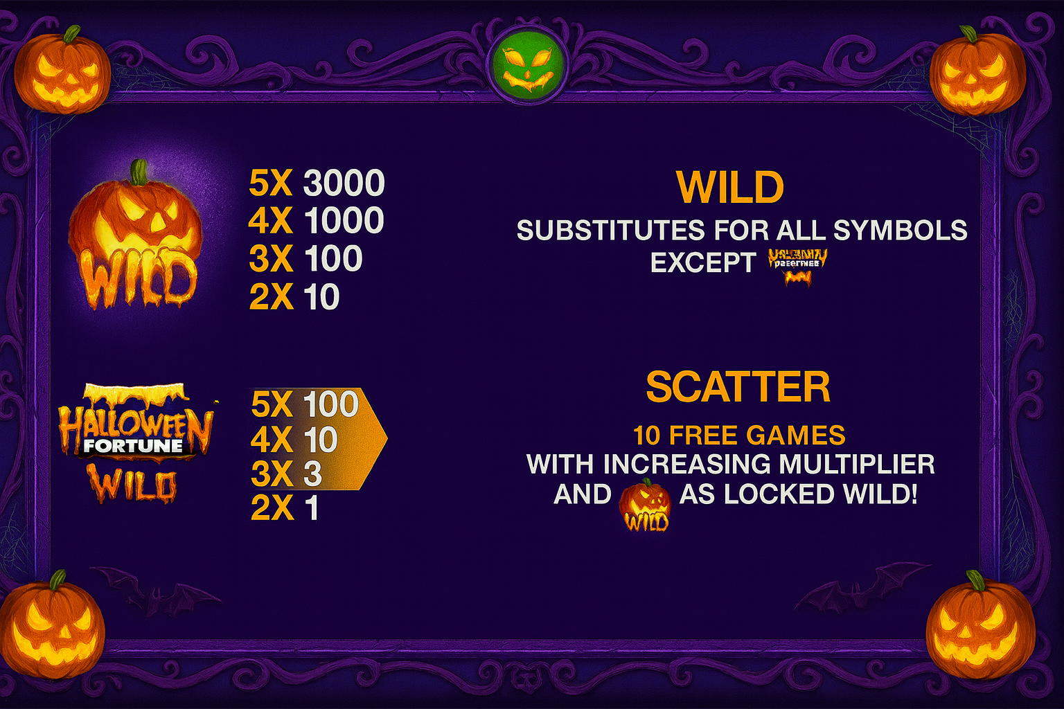 | Simboli speciali | Wild (Zucca di Halloween), Scatter (Logo del gioco) |