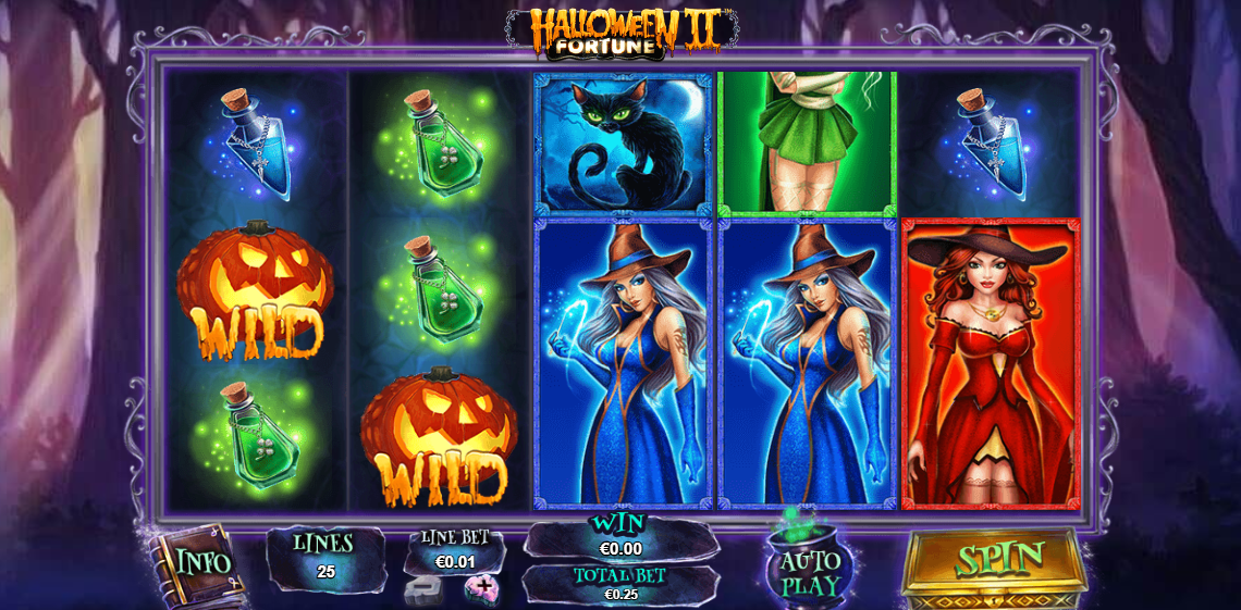 Halloween Fortune 2 è stata lanciata nell’ottobre 2016, a quattro anni di distanza dall’originale Halloween Fortune del 2012. Fin dal primo avvio si nota la cura grafica: Playtech ha optato per uno stile visivo fumettistico e un’ambientazione in una foresta oscura che richiama Halloween senza risultare troppo spaventosa o cupa. Le animazioni sono fluide e i simboli colorati (pozioni, gatti neri, corvi, teschi e le tre streghe protagoniste) spiccano sui rulli con effetti visivi gradevoli. Anche la colonna sonora mescola toni gotici e suoni di magia in modo leggero, creando un’atmosfera immersiva ma adatta a tutti i tipi di giocatori.